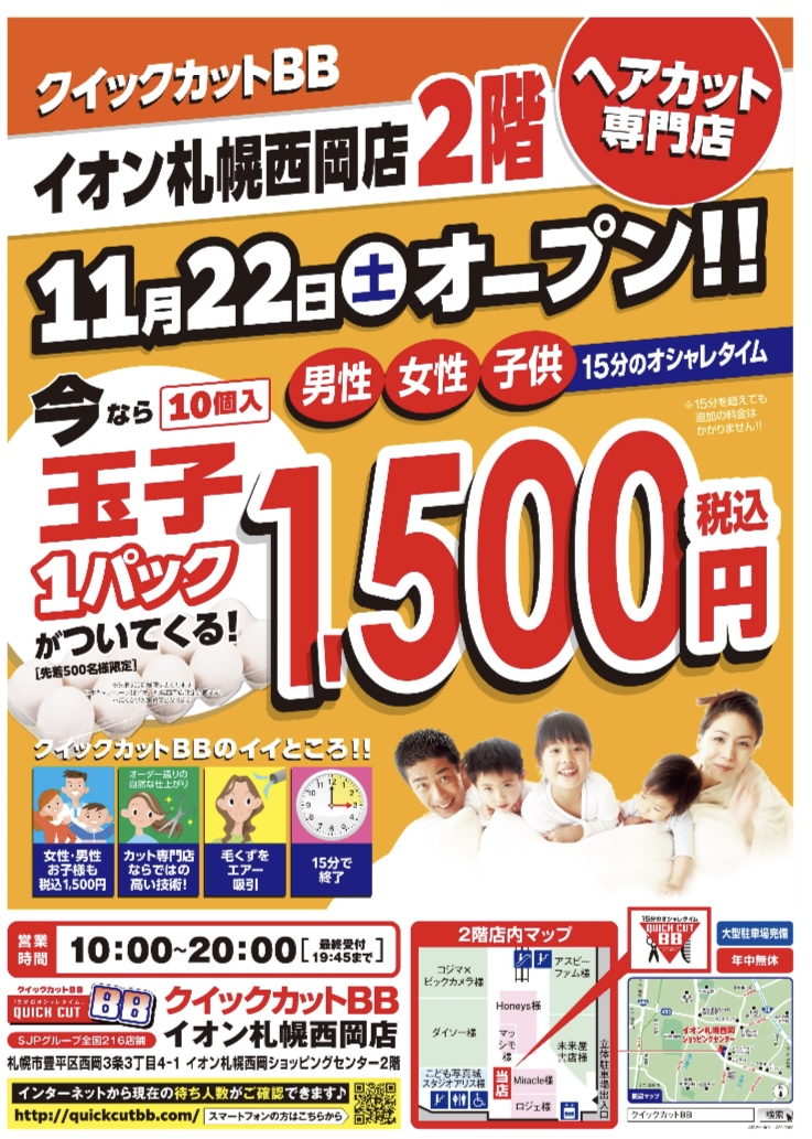 待望のクイックカットBBが11月22日オープンいたしました!!